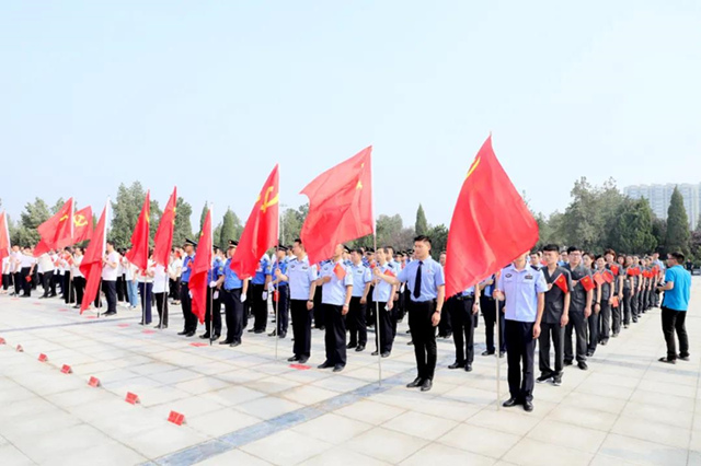 “我志愿加入中国共产党……履行党员义务……为共产主义奋斗终身……”,随着铿锵有力的宣誓声,全体党员高举右拳,面向党旗,一字一句,由滑县县委书记陈忠带领大家共同重温入党誓词,拉开了滑县庆祝建党100周年大型“快闪”活动的序幕。