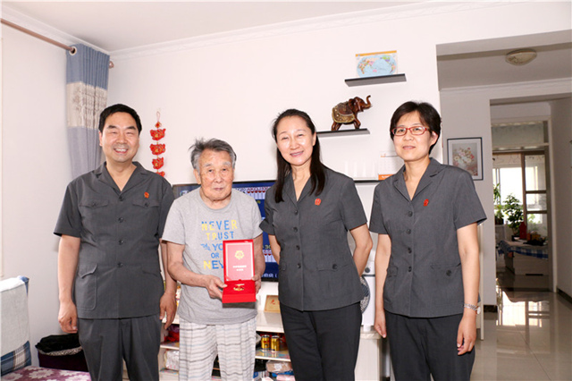 6月11日,在“七一”党的生日来临之际,为让老同志深切感受以习近平同志为核心的党中央的关怀和温暖,河南省安阳市龙安区人民法院按照上级统一部署和要求,上门为岳锁元和武秋荣两名符合条件的老同志隆重颁发“光荣在党50年”纪念章。
