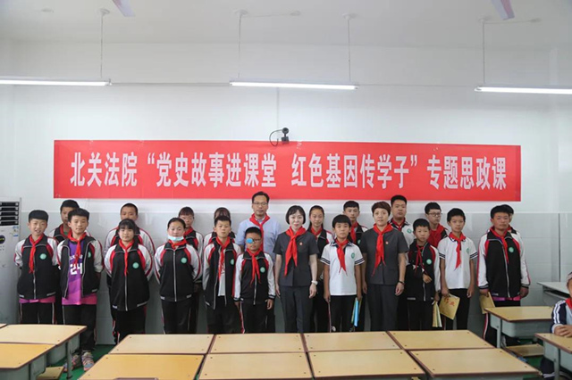 少年强,则国强!在“我们是共产主义接班人”的嘹亮歌声中,北关法院为学生们带来的党史思政课结束了。但党史学习教育永远在路上,北关法院党总支将用活党史“教科书”,走进校园走进课堂,教育引领青少年学生学党史、强信念、跟党走,在回望历史中更坚定地走好当下路,做好红色基因的传承人,锻造矢志奋斗的强大力量,走好新时代的长征路。