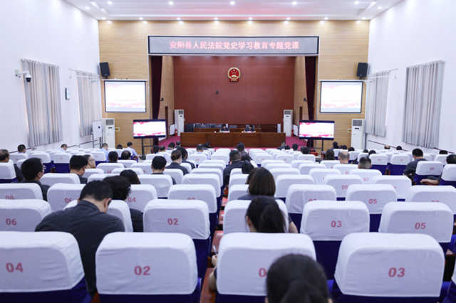 为全面贯彻落实党史学习教育的决策部署,扎实推进政法队伍教育走深走实,6月25日下午,河南省安阳县人民法院党组书记、院长景瑞红以“学好百年党史,汲取奋进力量,凝聚推动法院工作高质量发展的磅礴之力”为题,为全院干警讲了一堂别开生面、内容丰富的党史主题党课。