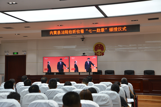 6月29日上午,庆祝中国共产党成立100周年“七一勋章”颁授仪式在人民大会堂隆重举行。中共中央总书记、国家主席、中央军委主席习近平为“七一勋章”获得者颁授勋章并发表重要讲话。河南省内黄县人民法院党组书记、院长王海军带领该院全体干警收听收看颁授仪式盛况,认真聆听学习总书记重要讲话,第一时间学习领会会议精神,感受平凡党员给全党全社会带来的精神洗礼,学习优秀党员先进楷模的历史担当。