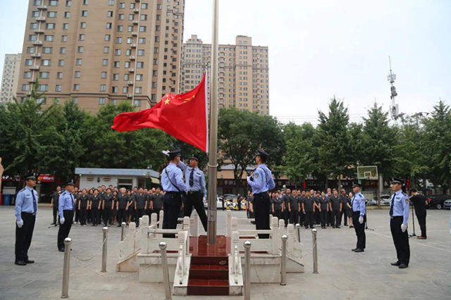 7时45分,北关区人民法院全体干警列队站立在办公楼前,参加庄严神圣的升旗仪式。护旗手昂首挺胸,迈着铿锵有力的步伐,护送国旗走向升旗台。伴随着国歌《义勇军进行曲》的响起,升旗手振臂一挥,鲜艳的五星红旗冉冉升起,全体干警肃穆而立,庄严地仰望国旗行注目礼,用最庄重的形式、最赤诚的心情表达对党、对祖国的崇高敬意。