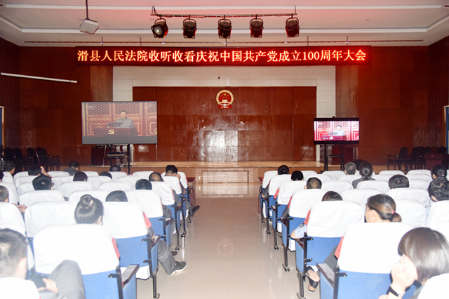 滑县法院组织党员干警在一号审判庭集中收看庆祝中国共产党成立100周年大会电视直播,共同感受振奋人心的时刻,共庆中国共产党百年华诞。