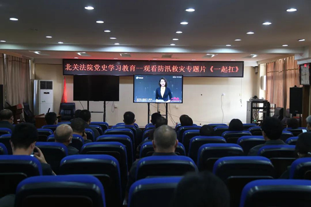为大力宣传河南防汛救灾中涌现出的先进事迹,凝聚共克时艰的强大力量,根据中共河南省委党史学习教育领导小组办公室的要求,8月5日下午,北关区人民法院组织全体干警在院四楼视频会议室观看防汛救灾特别节目《一起扛》。