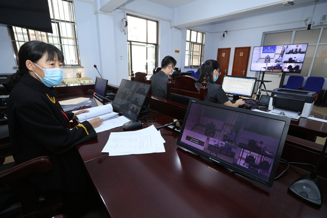 为确保疫情期间刑事审判工作有序进行,8月12日,河南省安阳县人民法院运用信息化技术手段,通过远程提讯系统与看守所视频连线,开庭审理一起帮助信息网络犯罪活动案。