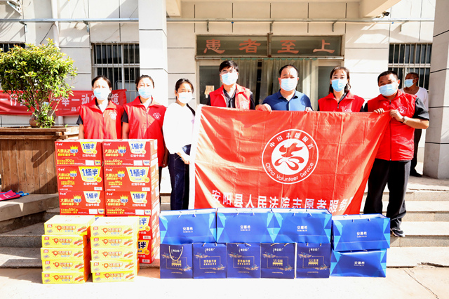 为更好打赢疫情防控阻击战,积极承担社会责任,为疫情防控贡献力量,8月24日上午,安阳县人民法院组织干警深入辖区吕村镇卫生院,开展了夏日送清凉、防疫送物资、餐点送盒饭、家庭送关怀、助力镇村疫情防控等“四送一助力”志愿服务活动。
