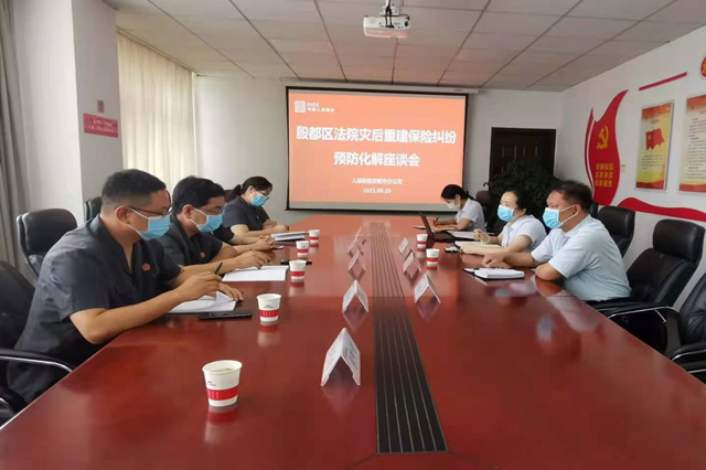 8月20日下午,殷都区法院副院长李军林、党组成员赵芳英、立案庭庭长万娅飞、审管办主任陈捷锋以及诉前调解中心负责人张明娟一行五人到中国人民财产保险公司安阳分公司就灾后重建过程中保险合同纠纷的预防工作专题调研并召开座谈会,中国人民财产保险公司安阳分公司总经理牛江良、理赔中心主任袁庆香等参加了座谈会。