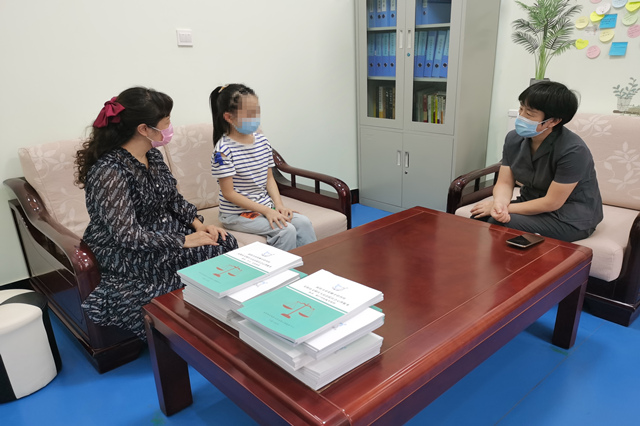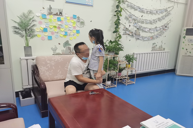 原告崔某、被告杜某登记结婚后育有一女小美,由于婚后矛盾不断,长期争吵,双方感情出现裂痕,并给女儿留下一定心理阴影。原告诉至法院,请求法院判令原、被告离婚,9岁的婚生女小美由原告抚养。考虑到涉及未成年人抚养权问题,为使判决结果更符合未成年人的实质利益,文峰区法院启动心理疏导机制。8月27日下午,李雪法官和心理咨询师曹玉霞,一起对小美进行了心理疏导。因孩子之前目睹过父母之间的冲突,现在内心对父亲有一些抵触情绪。通过与小美沟通,了解其学习、生活方面的情况,小美逐渐放下戒心,表达了自身的真实想法。经过咨询师不断耐心安抚和开导,小美打开了心结,愿意跟已经一年未见的爸爸见面。随后,小美向爸爸说出了自己的心里话,父亲也是热泪盈眶,父女相拥,心理咨询室里一片温馨。