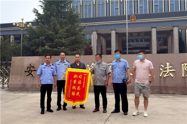 “感谢法院、感谢法官,帮我们公司执行回来拖欠二十年的执行款”,9月14日早上,申请人某木业公司董事长专程来到文峰区法院送来一面“司法为民、积案执结”的锦旗,表达对执行干警赵刚的感谢。