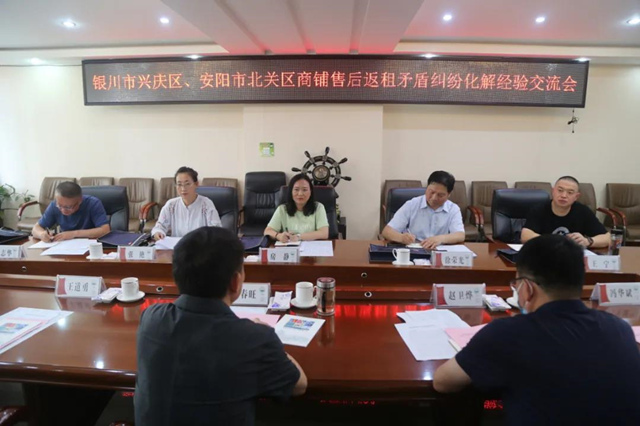 9月13日,银川市兴庆区委政法委副书记房静、兴庆区人民法院副院长徐光荣等一行5人,不远千里来到安阳市北关区人民法院,交流学习商铺售后返租纠纷案件经验做法。北关法院党组书记、院长李春旺,区政法委常务副书记王道勇,豆腐营办事处党工委书记赵卫烨,区法院党组成员、副院长郭晓军,区法院部分干警陪同。