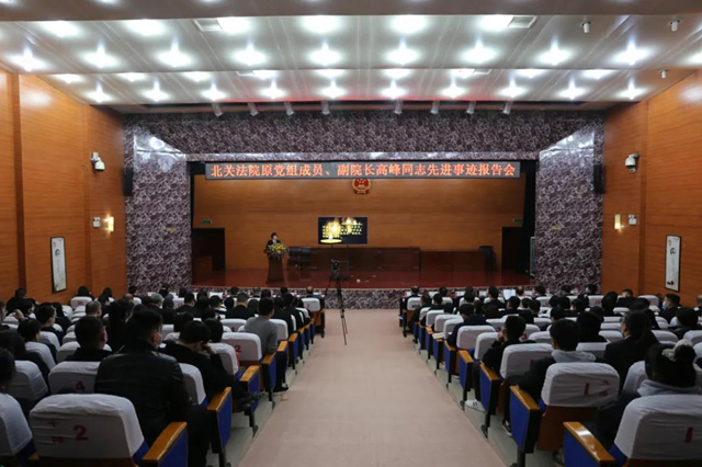 为缅怀北关法院原党组成员、副院长高峰同志坚守法治信仰、献身司法事业的崇高精神,引导鼓励广大干警对标先进、见贤思齐,争当为民、务实、清廉的法院好干部,11月2日下午,安阳市北关区人民法院举办高峰同志先进事迹报告会。全国人大代表黄玉梅、安阳中院副院长王新芳、北关区政法委书记王正贤、区人大常委会副主任胡秉州、区政协副主席赵成宇、区检察院检察长徐财启等领导及部分人大代表、政协委员和媒体记者应邀出席会议。报告会由区法院政治部主任宋萍主持。