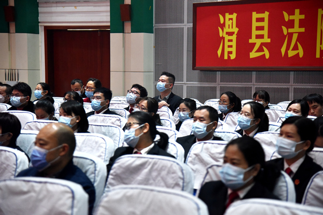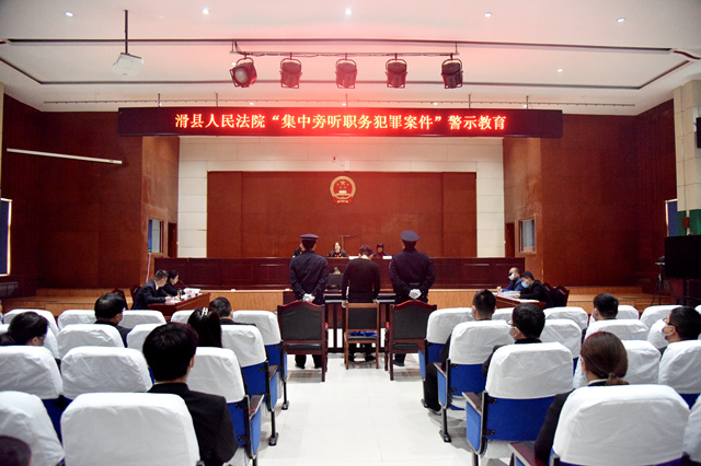 为进一步发挥典型案例警示震慑的针对性和时效性,真正达到以案释法、以案为鉴、以案明纪的效果,11月4日上午,滑县人民法院组织80余名干警旁听一起某法院工作人员涉嫌诈骗、受贿案件庭审,利用“身边事”教育“身边人”。