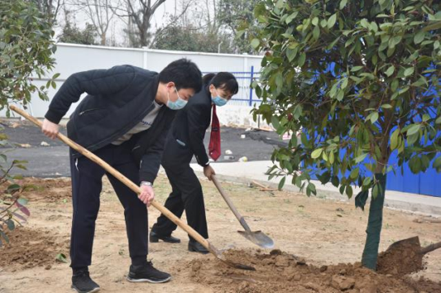 经过2个多小时紧张劳动,新栽种的树苗在春风中挺立,在阳光中昂扬,展现勃勃生机,让绿色成为法院最亮的底色。