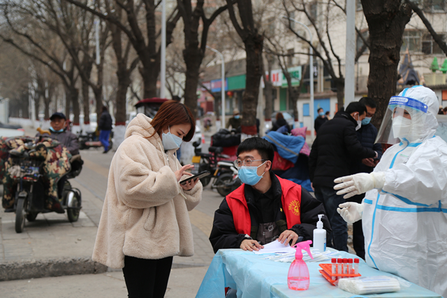 全体下沉干警分成7个组,分别下沉到豆腐营街道7个核酸检测点,帮助群众下载“安馨办”APP录入信息,为没有智能手机的群众手动登记信息,引导群众有序采样,维持好现场秩序。在5个多小时的检测过程中,他们以守土有责的使命感坚守岗位,保障核酸检测工作有序开展、顺利完成。身披“志愿红”的身影为这场“倒春寒”注入满满暖意。