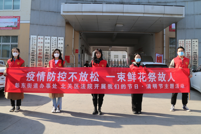 又是一年春草绿,又是一年清明时。清明节是人们缅怀英烈、祭奠先人、寄托追思的传统节日。为深化移风易俗,树立文明祭祀新风尚,结合当前疫情防控的新形势,4月2日上午,安阳市北关区人民法院联合北关区彰东街道办事处,开展“疫情防控不放松,一束鲜花祭故人”主题志愿服务活动。