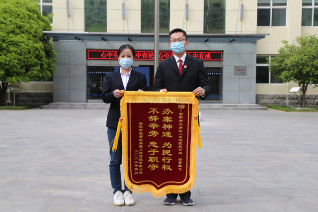 “没想到案子这么快就执结了,感谢法院!”4月12日下午,安阳市北关区人民法院执行干警韩飞收到了来自申请执行人的一面锦旗,当事人对法院的高效执行表示感谢。