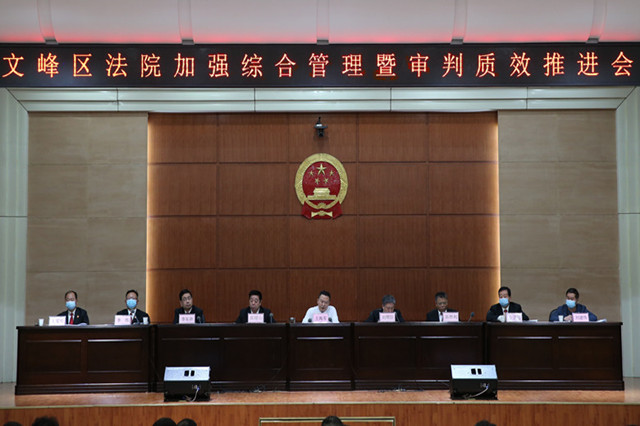 5月6日下午,文峰区法院召开加强综合管理暨审判质效推进会。党组成员、院长王海军出席会议并讲话,全体班子成员、各部门负责人、审判部门全体人员参加了会议。会议由党组副书记刘顺臣主持。