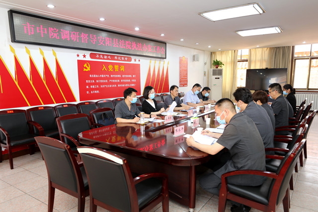5月19日下午,安阳中院党组副书记、副院长王韶方,审委会专职委员李亚琨等一行5人到安阳县法院调研督导执法办案工作。安阳县法院党组书记、院长郭万兴,相关院领导及审管办全体干警参加了座谈。