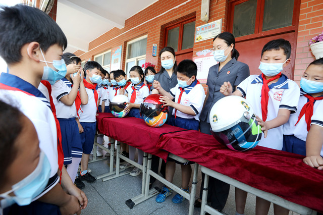 “千万不要私自下水游泳,不要擅自与他人结伴游泳”“一定要告诉家人,开电动车要戴头盔,咱小学生坐电动车也要戴头盔……”活动现场,法官通过讲解真实案例、现场模拟实验等方式,让学生们充分掌握防溺水相关知识及不戴头盔的严重后果,全力提高学生们的安全防范意识和自我保护能力;随后,法官向学生们发放了民法典、家庭教育促进法、未成年人保护法等相关宣传资料,教育学生们从小做一名学法、懂法、守法的好学生;最后,法官还向学生们赠送了篮球、羽毛球、乒乓球等体育用品。