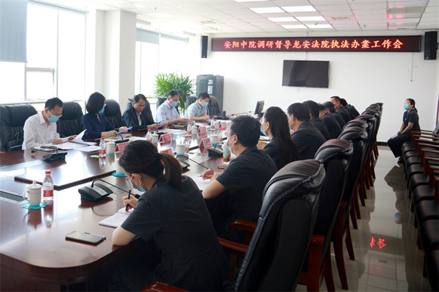 5月20日上午,安阳中院党组副书记、副院长王韶方,审委会专委李亚锟等一行5人到龙安法院调研督导执法办案工作。龙安法院党组书记、院长王晔及相关院领导、部门负责人参加了座谈。