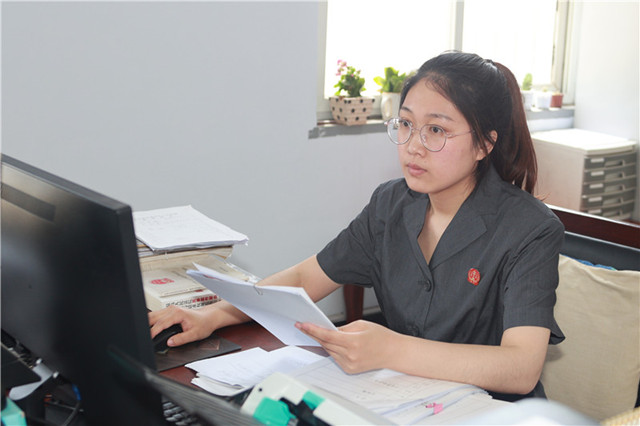 前几天,又去时,有人由于之前看到了我们在龙安区法院官微新栏目《光影鉴证》,在盛赞之后,提议让以《光影鉴证》报道一下他们的书记员王莉菲。当时,听说她已经到法庭工作几个月了,可我对她并不熟悉。说这话时,她因一智力障碍当事人的起诉,和另一位同事上门立案去了,并不在法庭里。
