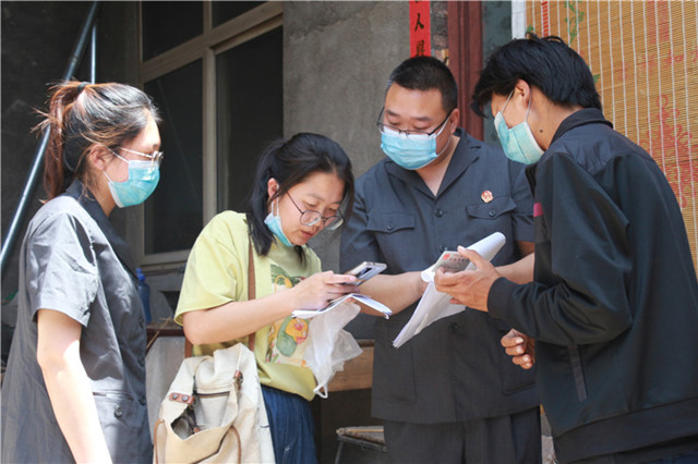 图为5月27日,该院龙泉法庭了解到杨某因智力缺陷,不能正常与人交流,其父母年龄也比较大,不能亲自到法院立案的特殊情况后,该庭郭志杰、王莉菲两名同志为她上门立案的情形。