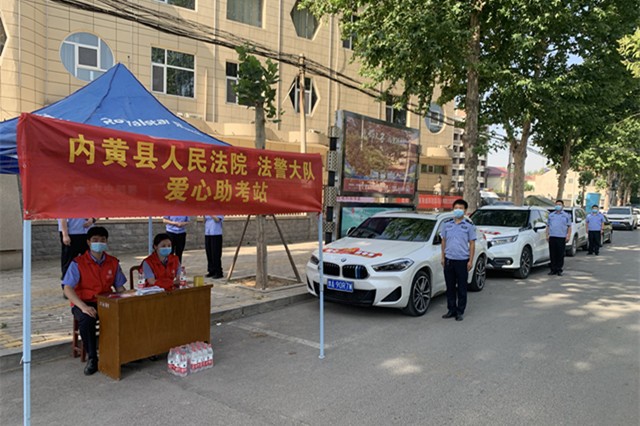 担心考点附近太吵?怕早上赶考迟到?忘记带考试证件?考场附近堵车怎么办?高考在即,考生及家长可能充满了这样那样的焦虑。请放心,内黄县法院学雷锋志愿服务队永远在您的身后。高考两天,内黄县法院十余名志愿服务队成员在该院司法警察大队队长梁帅、政委李永刚的带领下设立“助力高考”服务站,并加入“爱心护考”志愿车队,为广大考生及家长提供矿泉水、口罩、困难帮助等便利服务,将“我为群众办实事”实践活动与“助力高考”志愿服务进行了有机融合,为缓解广大考生及家长的紧张情绪、护航高考,贡献了法院力量。