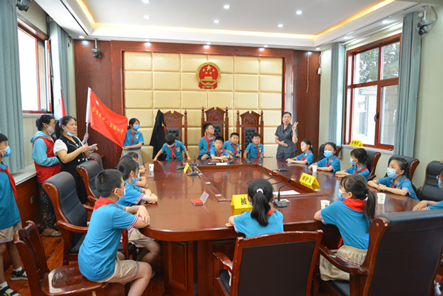 尽管夏日炎炎,同学们仍怀着无比兴奋和期待的心情走进法院,参观了办公区、审判区、多功能刑事审判庭、大要案审判庭和羁押室,同学们对法院的刑事审判工作环境有了初步的认识。