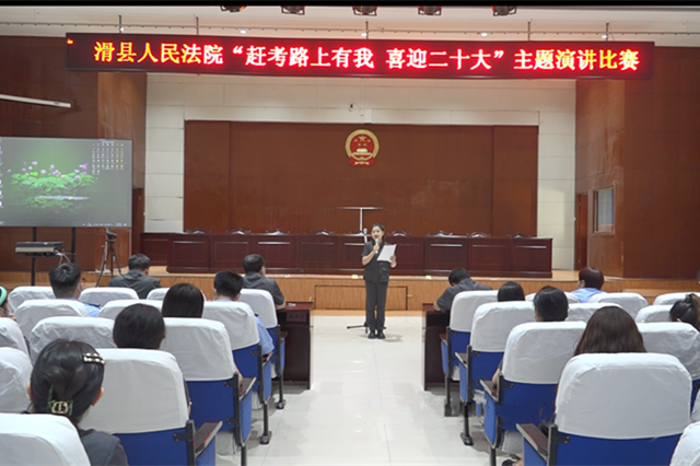 6月20日下午,滑县人民法院在第一审判庭举办“赶考路上有我 喜迎二十大”主题演讲比赛。来自滑县法院各部门的10名干警参加比赛。