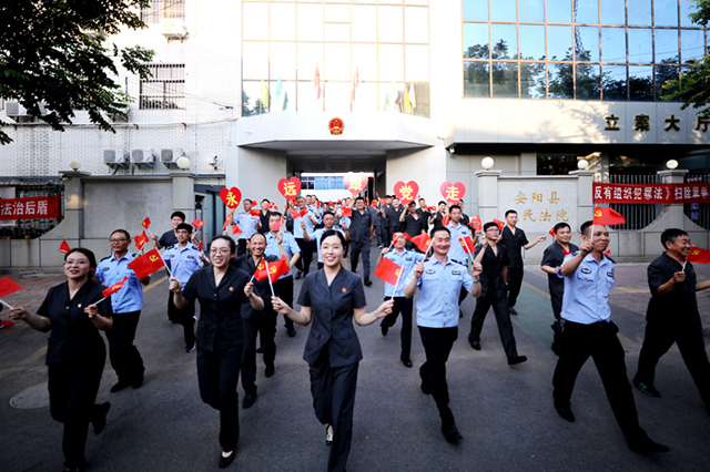 6月24日下午,安阳县人民法院组织开展“喜迎二十大、永远跟党走”献礼建党101周年主题系列活动。广大干警通过唱红歌、拍摄创意合影等形式,表达对党的无限热爱和真挚祝福,庆祝“七一”,喜迎党的二十大胜利召开。