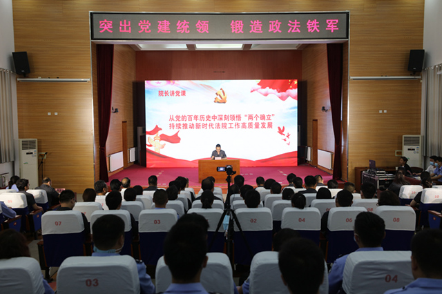 7月1日,安阳县人民法院党组书记、院长郭万兴以《从党的百年历史中深刻领悟“两个确立”、持续推动新时代法院工作高质量发展》为题,为全体干警讲授专题党课,教育引导广大干警深刻领悟“两个确立”的决定性意义,将“两个确立”真正转化为做到“两个维护”的思想自觉、政治自觉、行动自觉,以实际行动践行司法为民的初心使命,用学习成果助推法院各项工作高质量发展。
