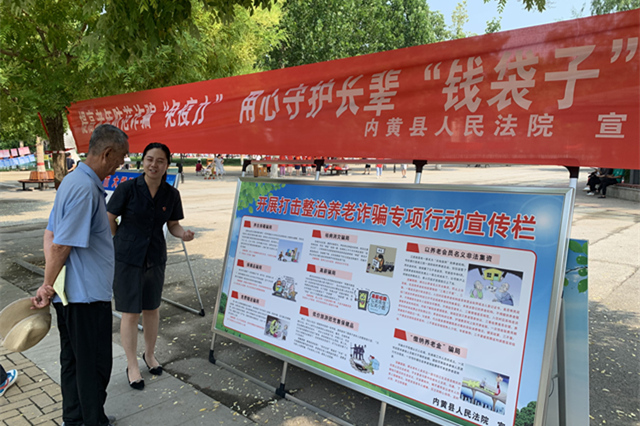 在中国共产党建党101周年、香港回归25周年之际,为助力平安建设,严厉打击整治养老诈骗、电信诈骗,提升群众防范诈骗意识,7月1日,内黄县人民法院组织刑庭干警在内黄县公园文化广场以面对面、零距离的方式,开展“打击整治养老诈骗”“打击电信诈骗”宣传活动。