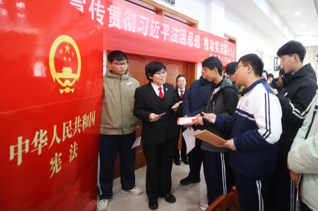 在“12·4”国家宪法日来临之际,12月3日上午,安阳县人民法院组织干警深入辖区安阳县职业中等专业学校,开展了一场以“宪法是青春的必修课 ‘宪’给你一生的守护”为主题的宪法知识进校园普法宣传活动。