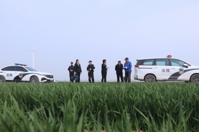 3月24日下午,河南省安阳县人民法院吕村人民法庭法官及司法警察等一行5人,深入到辖区辛村镇的田间地头,对一起土地租赁合同纠纷案进行实地勘验,将司法服务延伸到春耕生产第一线。